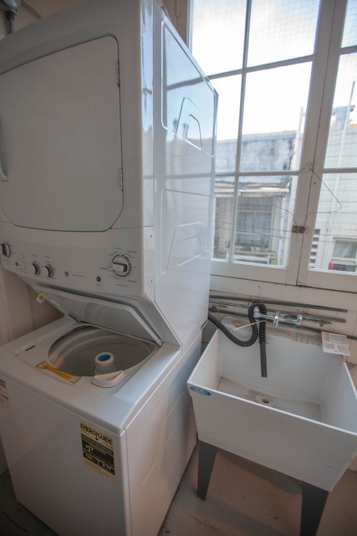 1 good size bedroom plus large livingroom which could be used as the 2nd bedroom or office or den. Laundry share with 1 other unit on the same flat.